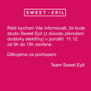 Ve studiu Sweet Epil už Ježíšek dárečky naděloval. Pro Vás jsme tu ale stále až do Vánoc a také pak mezi svátky. Tak si nezapomeňte zarezervovat termín na depilaci, ať si Vánoce vychutnáte v klidu a pohodě s pocitem dokonale hladké pokožky. REZERVUJTE si svůj termín ONLINE na našich stránkách: REZERVOVAT OTEVÍRACÍ DOBA BĚHEM…