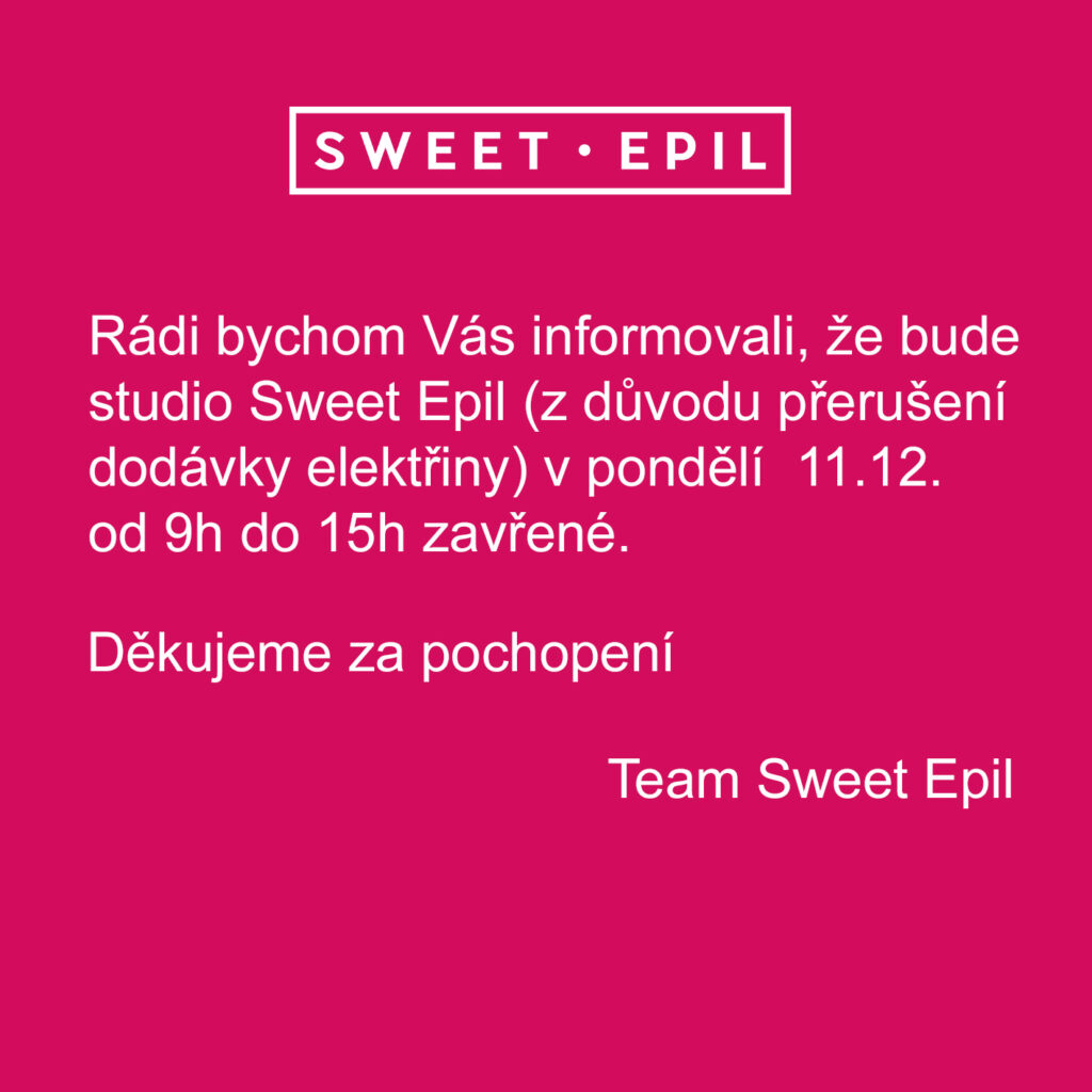 Ve studiu Sweet Epil už Ježíšek dárečky naděloval. Pro Vás jsme tu ale stále až do Vánoc a také pak mezi svátky. Tak si nezapomeňte zarezervovat termín na depilaci, ať si Vánoce vychutnáte v klidu a pohodě s pocitem dokonale hladké pokožky. REZERVUJTE si svůj termín ONLINE na našich stránkách: REZERVOVAT OTEVÍRACÍ DOBA BĚHEM VÁNOČNÍCH SVÁTKŮ…